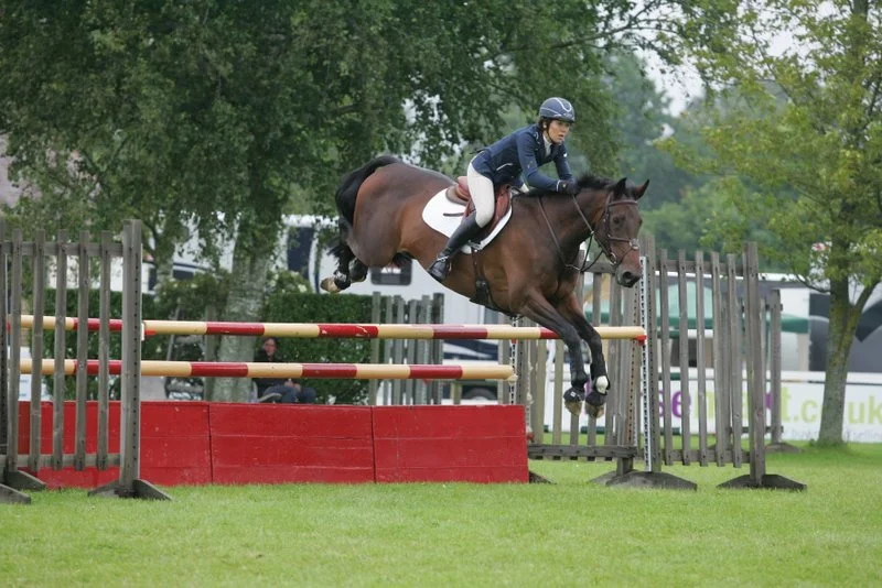 The horses all had a day off on Monday while I went to the office, and Tuesday was the big wash & brush up before the first of several 5.00 am starts on Wednesday. First up was Ferro in the Foxhunter qualifier for the main ring. She was a superstar racing round to miss qualification by two places. Sadly this also resulted in a rather racy approach to the 1.25 and two poles down. Next was Emma in the Novice Stakes (Newcomers) and a lovely double clear and a low placing and then Biscuit who just rolled a pole in the jump-off. Last round of the day was Homer who jumped beautifully round for one pole in the jump-off. There were also 16 Old Lodge horses competing on Wednesday – I think I just about managed to keep tabs on who did what.Emma went from strength to strength, winning the Newcomers at Royal Leisure and being placed at Vicarage. Homer was a very good boy, jumping his first Newcomers at Vicarage Farm – he was a bit surprised by three jumps in a row in the combination, but just takes everything in his stride. Biscuit just tapped one pole but otherwise was her usual genuine self. Having watched my videos of Ferro I had decided that I always look a bit busy and so decided to ride her more quietly and look more professional. The result was that she stopped at the first fence in the Foxhunter – back to busy riding and she jumped a lovely round in the 1.30!